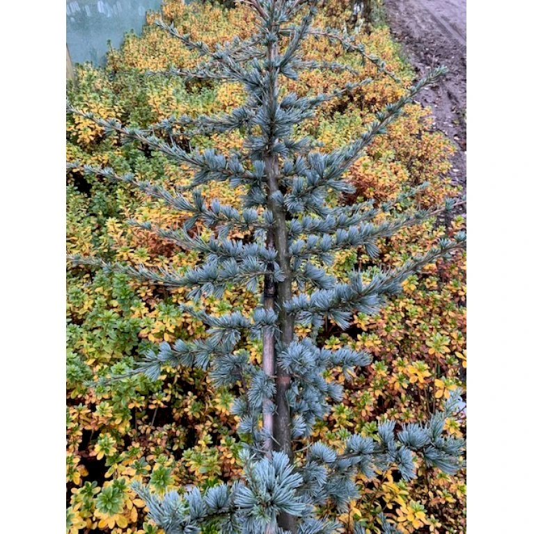 Vækst og løv: Stedsegrøn. Smuk iøjnefaldende med sine lysende blågrå nåle året rundt.