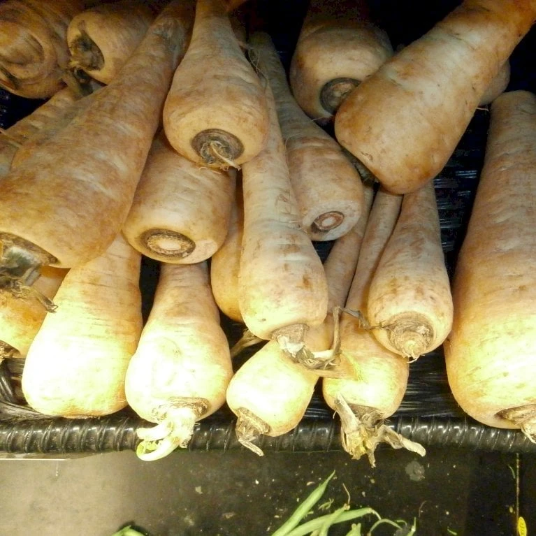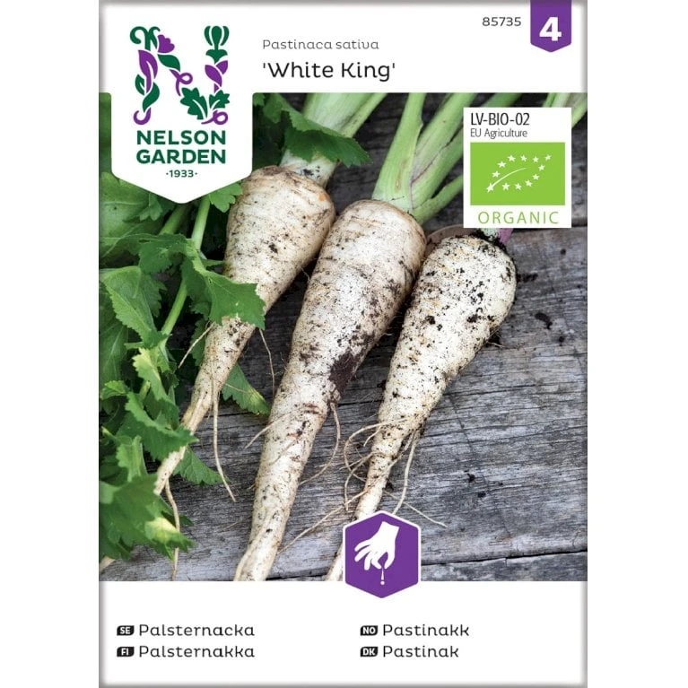 ‘White King’ er en spids, glat og hvid pastinak, som er meget velegnet til gryderetten med rodfrugter eller sammen med ovnbagte rodfrugter.