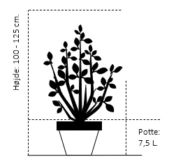 En fuldvoksen plante kan blive 4-6 meter høj og 60-80 cm. bred, hvis den ikke klippes.