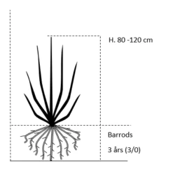 Rodnettet er tæt forgrenet og består af dybtgående hovedrødder og mange overfladiske finrødder.