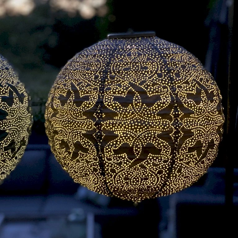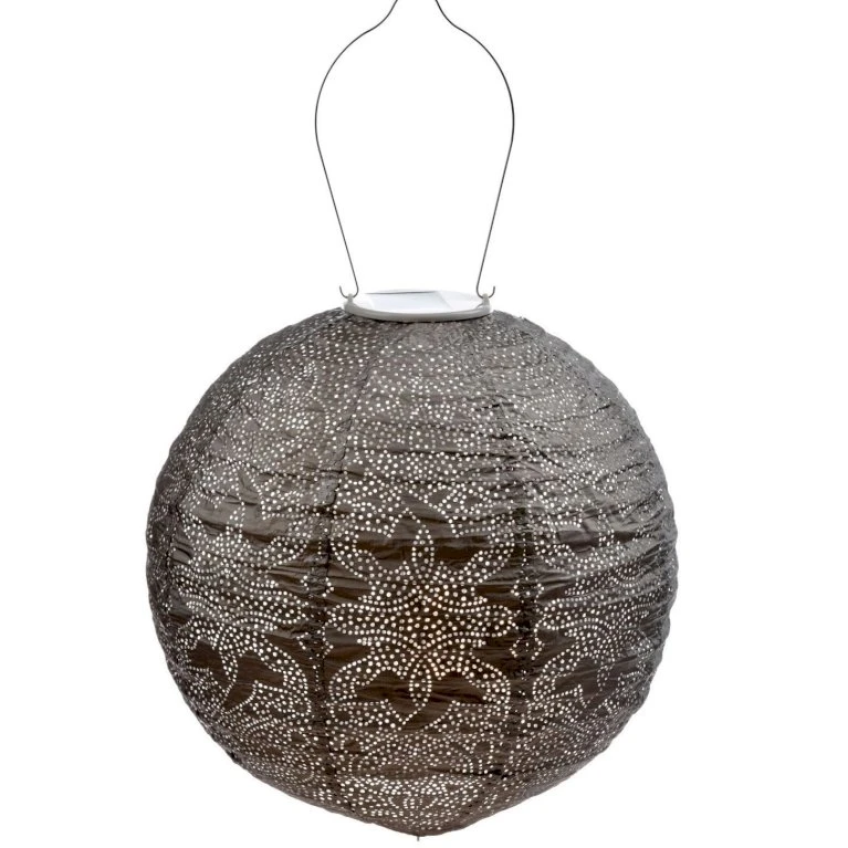 Lumiz solcelle lanterne rund 30 cm i grå med mønsteret ’Marrakesh’, vil give din have eller din terrasse en unik og flot belysning.