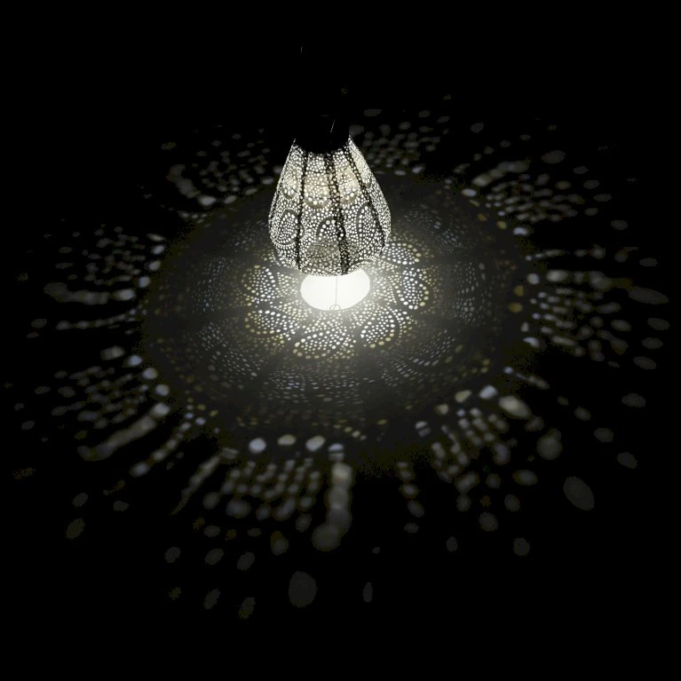 Lumiz solcelle lanterne tulip 20 cm i sølvfarve med mønsteret ’Paisley’, kan give et skønt og royalt look til din have eller terrasse.