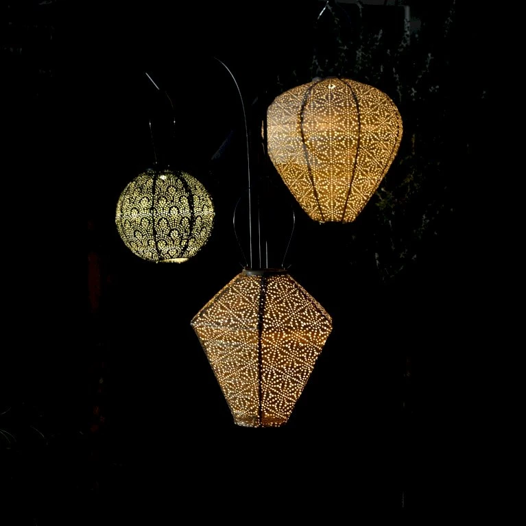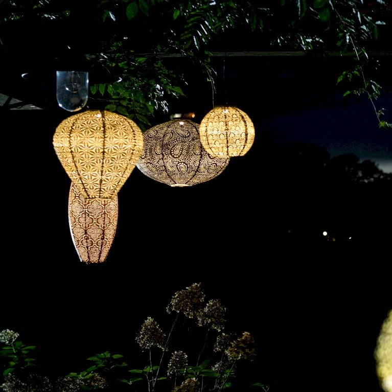 Solcellelampen vil lyse op i de mørke aftentimer, og sprede sit pæne mønster rundt om sig, med et varmt LED lys.